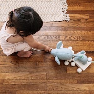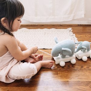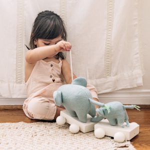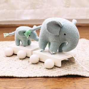 Asweets Elephant Pull Toy, for 18+ babies. Made of fleece, polyester and MDF. It can be easily detached for independent play.