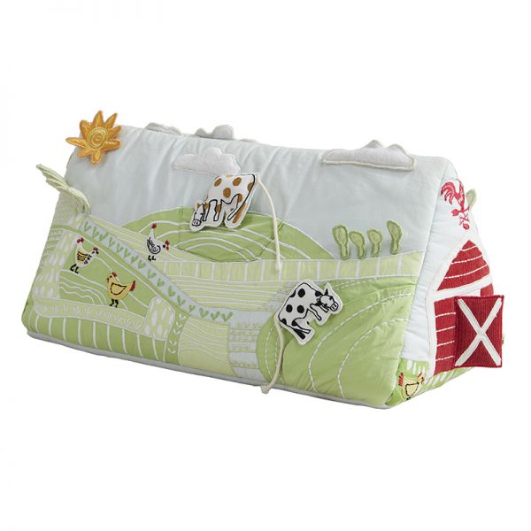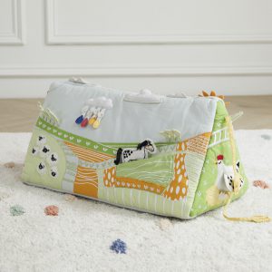 Asweets Farm Activity Tummy Time Toy for babies, Made of cotton with polyester fill. It comes complete with doll bedding, hidden bed, 3 hangers, wall mirror and a storage bin.